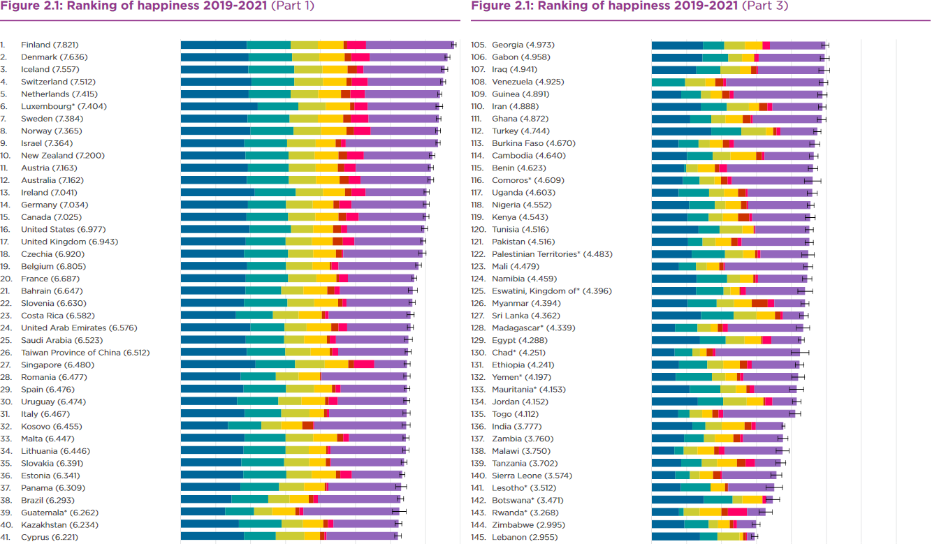 Source: The World Happiness Report. By John F. Helliwell, Richard Layard, Jeffrey D. Sachs, Jan-Emmanuel De Neve, Lara B. Aknin, and Shun Wang. New York: Sustainable Development Solutions Network, 2022